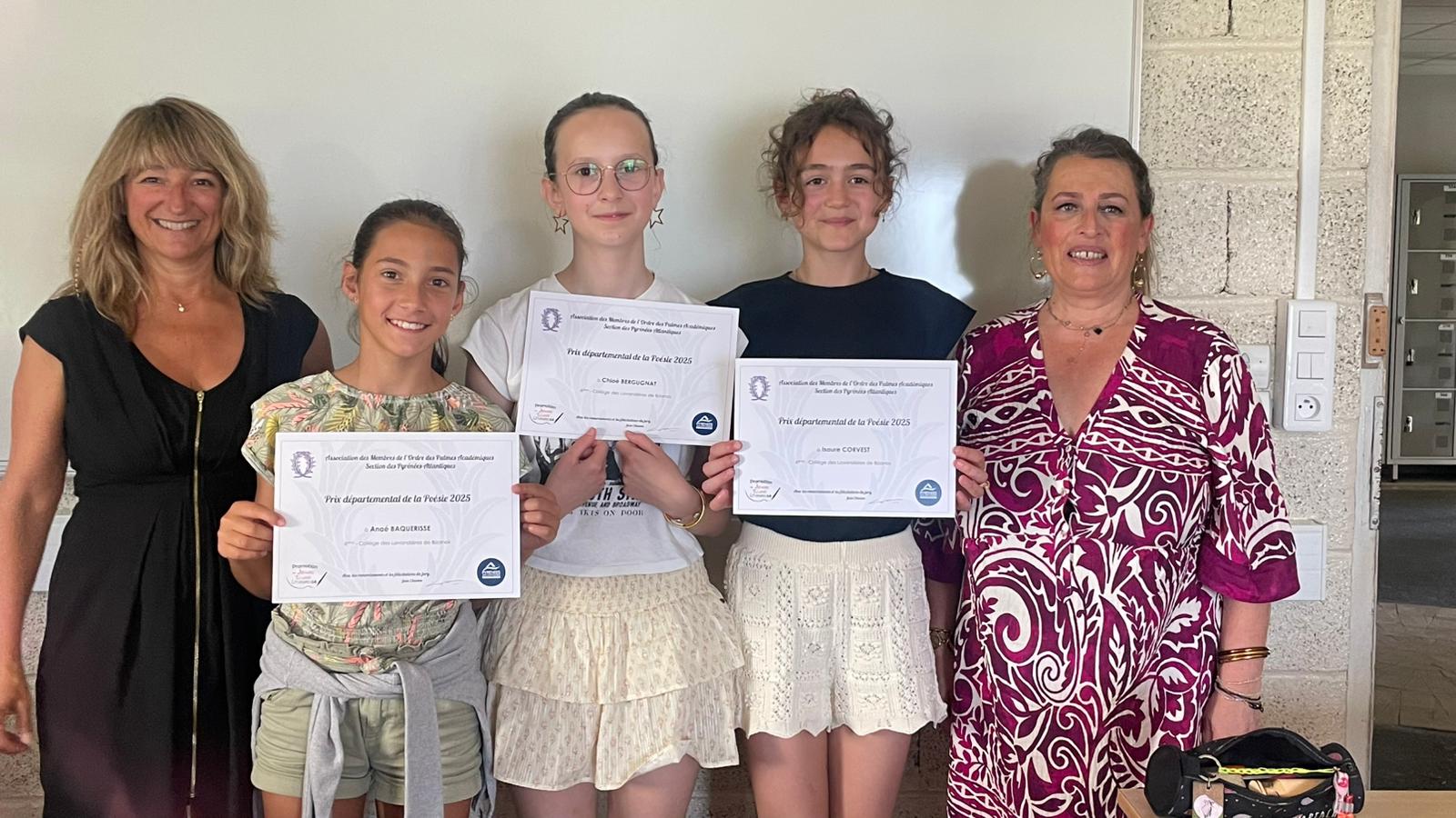 Cette année, les élèves de 601 et 602 ont écrit de jolis poèmes en cours de français, ce qui a permis aux volontaires de participer au concours d’écriture de l’AMOPA. Emmanuel Justes en 304, qui écrit pour le plaisir, a accepté de s’embarquer pour cette aventure également. Nous avons eu le bonheur de voir de nombreux élèves primés : Emmanuel Justes en 304, Jean Menaut et Maël Le Moullec en 602, Isaure Corvest, Chloé Bergugnat, Juliette Crébillon, Anna Pez, Ninon Schreiber, Anaé Baquerisse, Alicia Padioleau et Juliette Delaval en 601. Bravo à tous les participants car tous étaient méritants et félicitations à tous les lauréats avec une double ovation pour Chloé Bergugnat dont le poème a été sélectionné pour figurer parmi ceux des Jeunes Talents littéraires mis à l’honneur par l’Amopa. Je les encourage à continuer d’écrire et à manifester cette belle sensibilité qui est en eux.